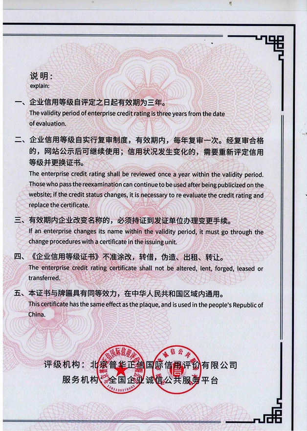 企業信用等級證書